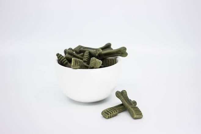 그리니스 덴탈껌은 부서지지 않고 쫀쫀하게 말랑거린다. 씹는 맛도 지키면서 아이들 이빨 건강도 신경쓴 셈.