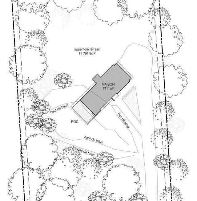 공중에 떠 있는 듯한 수평 구조는 바위로부터 침실이 있는 집 북쪽 끝까지 뻗어 있다. 이 구조물은 구조적 측면과 동시에 시각적인 구성에 안정감을 주도록 두 개의 거대한 콘크리트 평면에 놓이게 된다. 그리고 그것은 쉼에 대한 욕망의 표현이다.