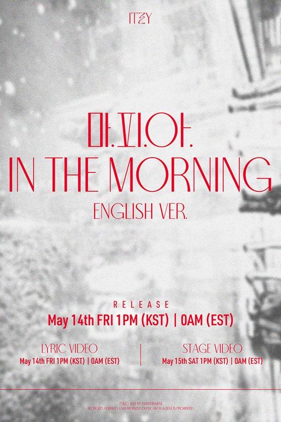 이에 따르면 ITZY는 14일 오후 1시(미국 동부시간 0시) '마.피.아. In the morning'을 영어로 가창한 음원을 전 세계 동시 발매하고 새 싱글의 영문 가사가 담긴 리릭 비디오도 함께 공개한다. 15일 오후 1시에는 ITZY 공식 유튜브 계정을 통해 무대 영상을 오픈하고 'K팝 대표 퍼포머'의 면모를 뽐낼 예정이다.