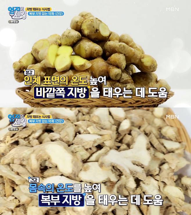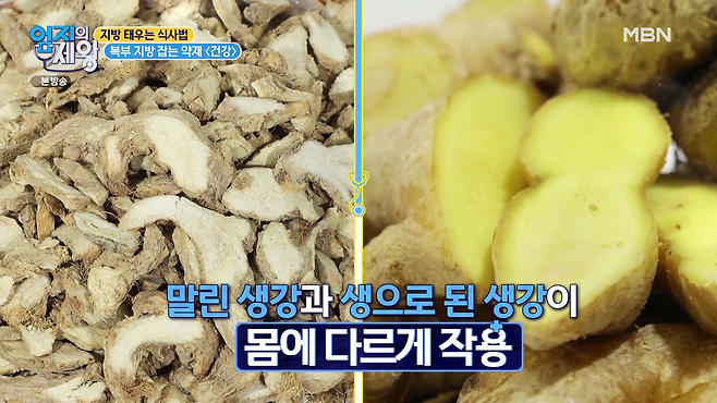 '생강'은 인체 표면의 온도를 높여 바깥쪽 지방을 태우는 데 도움을 주지만,