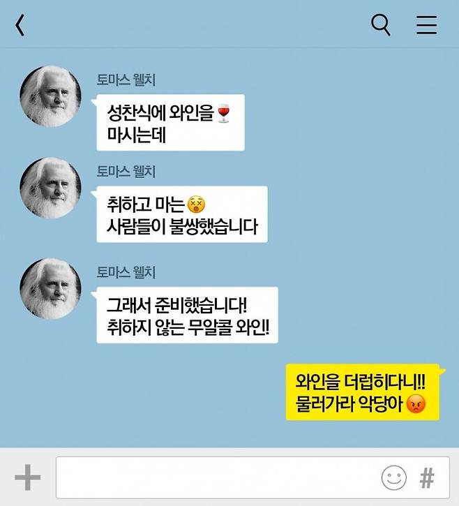 1800년대로 떠나보자. 웰치스를 만든 이의 이름은 ‘토마스 웰치(Thomas Bramwell Welch)’다. 토마스 웰치는 치과의사이자 독실한 신자였다. 신앙심이 투철했던 그에게 마음이 어려워지는 장면이 있었다. 바로 성찬식에 사용되는 포도주, 즉 와인이었다. 성경에는 ‘취하지 말라’라고 했는데 이 와인은 무엇이란 말인가?