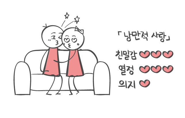 낭만적 사랑은 친밀감과 열정이 높아요.