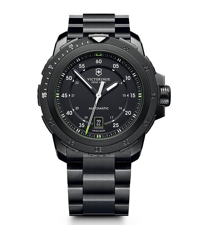 해밀턴과 루미녹스가 현존최강의 미군을 배경으로 한다면 역사적으로 유럽 최강의 군대로 통했던 스위스군에 걸맞는 시계 브랜드가 바로 빅토리녹스 스위스아미가 아닌가 합니다. 시계의 메카 스위스에서도 유일하게 '스위스군'이라는 이름을 브랜드명에 쓰고 있는데, 실용적인 시계를 추구하는 브랜드답게 빅토리녹스 스위스아미 역시 루미녹스처럼 쿼츠 무브먼트 기반의 제품을 많이 출시하고 있습니다. 하지만 루미녹스보다는 기계식 시계의 폭이 좀 더 넓고 그중에서도 이 모델을 추천해봅니다.