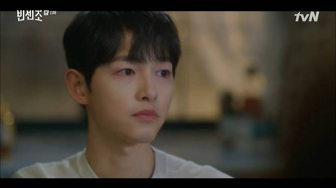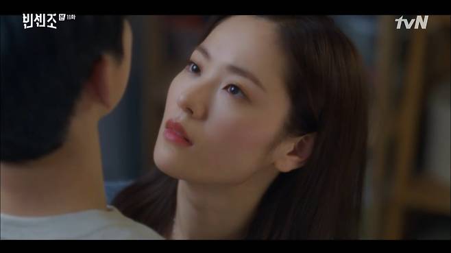 27일 오후 방송된 tvN '빈센조'에서는 홍차영(전여빈 분)이 빈센조(송중기 분)에게 두근거림을 느꼈다.