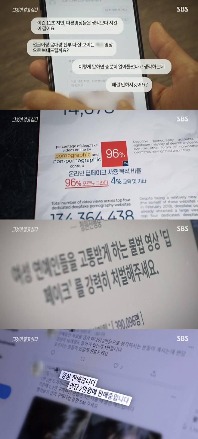 17살이라는 딥페이크 성착취물 판매자는 "서버를 열었을 때 사람들이 많이 몰렸고 지금까지 번 돈이 50만원 정도 된다. 돈 때문에 했다. 잘못된 것을 알기는 하지만 걸리면 책임을 지겠다"면서도 "책임을 질 수 있느냐"고 재차 물은 제작진에게 "책임질 수 없다"고 번복했다.