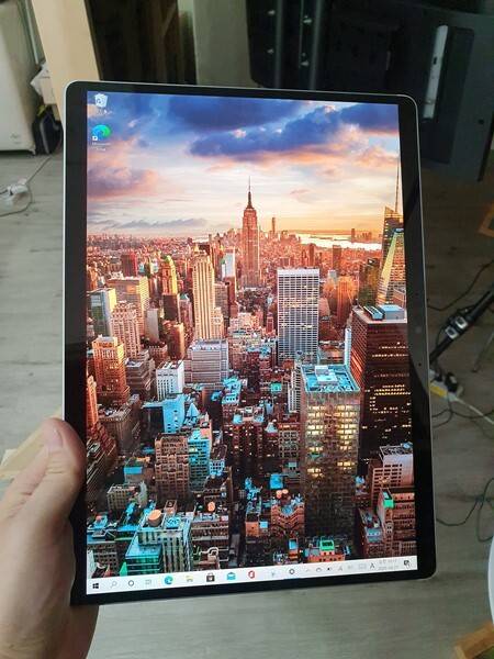 요즘 태블릿들이 상하좌우 베젤 두께를 맞추는 것과 달리 서피스 프로 X의 테두리는 슬림 노트북처럼 측면이 얇고 상하단이 두꺼운 형태다. 따라서 세로 모드로 들면 어색한 느낌이 들 것 같지만 들어본 결과 나쁘지 않았다. 태블릿 모드가 아닌 데스크톱 모드로 윈도우를 구동했더니 세로 모니터를 쓰는 바로 그 느낌이 든다.