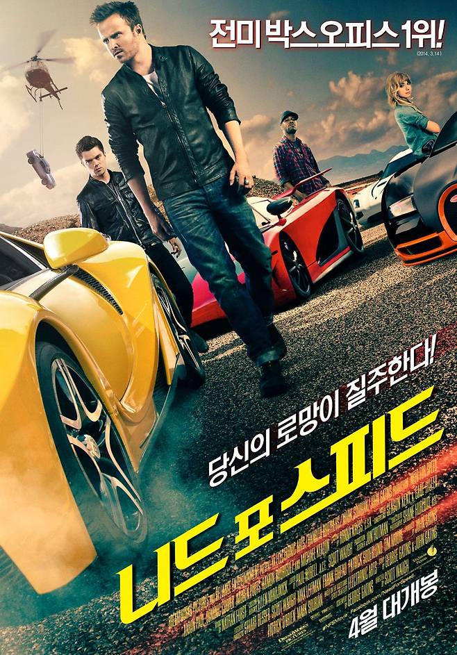 게임으로도 유명한 ‘니드 포 스피드’, 영화에선 강렬한 질주 본능을 과감하게 드러낸다. 슈퍼카를 상품으로 벌어지는 불법 레이스가 배경이다. 온갖 방해에도 불구하고 레이스에 참여하려는 주인공 토비, 현상금을 목표로 추격하는 방해자, 경찰과 추격신이 주된 흥미 포인트. 슈퍼카를 상품으로 벌어지는 레이스인 만큼 갖가지 모델을 구경하는 재미도 쏠쏠하다.