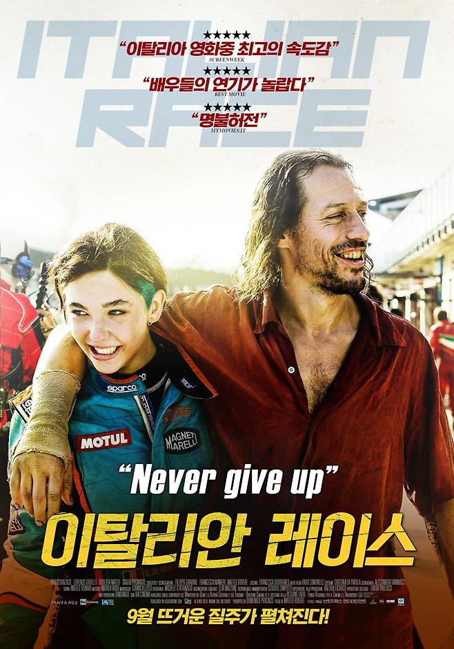 이번엔 이탈리아 실화를 바탕으로 만들어진 영화다. GT 챔피언십을 배경으로 만들어졌으나 최후에는 불법 레이스로 빠지는? 조금은 난해한 구성. 어쨌든 아버지 밑에서 영재 교육받던 소녀 레이서 줄리아가 아버지를 잃고 고군분투한다. 미친 레이싱 실력을 가진 마약중독 이복 오빠의 등장과 좌절, 혼란을 다뤘다. 간간이 들려오는 레이싱 사운드와 스킬 전수는 GET, GET!