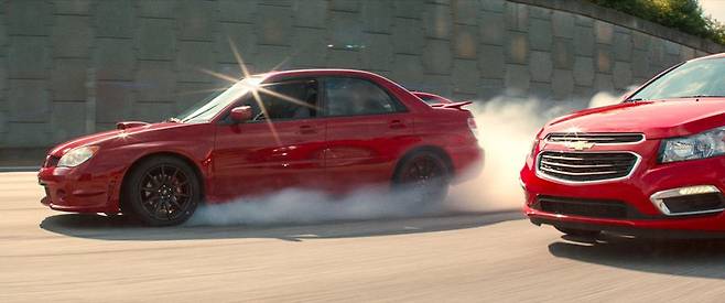 추격신+다양한 차종+음악이라면 단연 베이비 드라이버다. 주인공은 청력 이상으로 이어폰을 꽂고 음악을 크게 들으며 운전한다. 초반부터 스바루 임프레자를 등장시켜 강렬한 드리프트를 선보인다. 물론 영화를 위해 드리프트가 가능하도록 튜닝했다. 뒤이어 토요타 코롤라, 포드 크라운, 폭스바겐 제타, 쉐보레 크루즈, 기아 쎄라토, 닷지 차저와 챌린저, 캐딜락 엘도라도 등 엄청난 숫자의 차들이 등장한다. 이어폰을 꽂고 음악을 듣는 주인공 설정에서 얼핏 유추했을 테지만 음악은 베이비 드라이버에서 빼놓을 수 없는 요소다. 모든 장면, 장면이 음악과 함께한다. 각 장면마다 딱딱 들어맞는 음악을 삽입해 효과도 극대화했다.