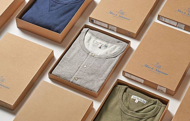 의류에서 가격 편차가 가장 큰 품목은 면 티셔츠가 아닐까 싶다. 단돈 몇천 원에 구입할 수 있는 가성비 버전부터 명품 로고를 박은 몇십만 원짜리까지 수십수백 배의 차이를 보이기 때문이다. 메르츠 비 슈바넨의 면 티셔츠는 그 중간쯤에 속하는 십만 원 선이다. 그러나 로고도 없고, 물론 명품 쇼핑백도 제공되지 않는다. 무지 티셔츠를 누가 그 가격에 사냐고? 놀랍게도 그리 유명하지도 않은 이 브랜드의 팬층은 꽤나 두껍다. 독일의 작은 공장에서 세계 최고 품질의 면 티셔츠를 만드는 메르츠 비 슈바넨의 진가를 알아본 사람들 덕분이다.