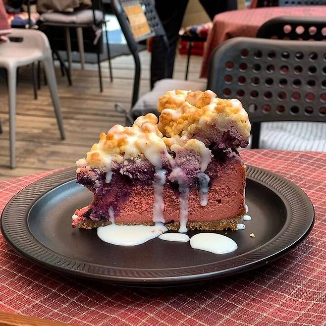 ▶메뉴: 홈메이드케이크(7,000~9,500원)ㅣ아메리카노(4,900원)ㅣ자색고구마스콘(2,600원)
