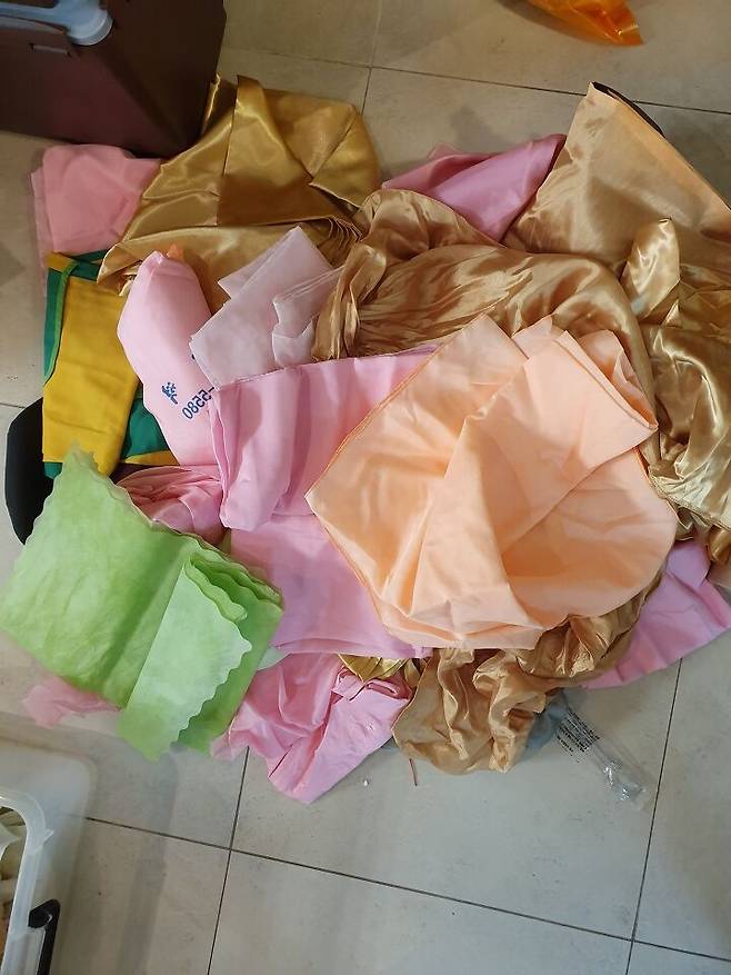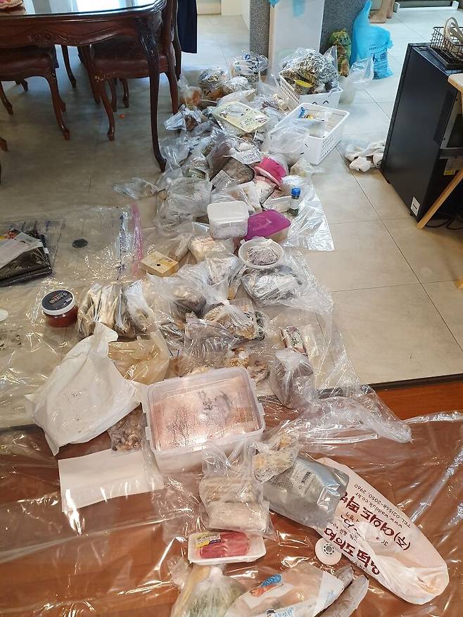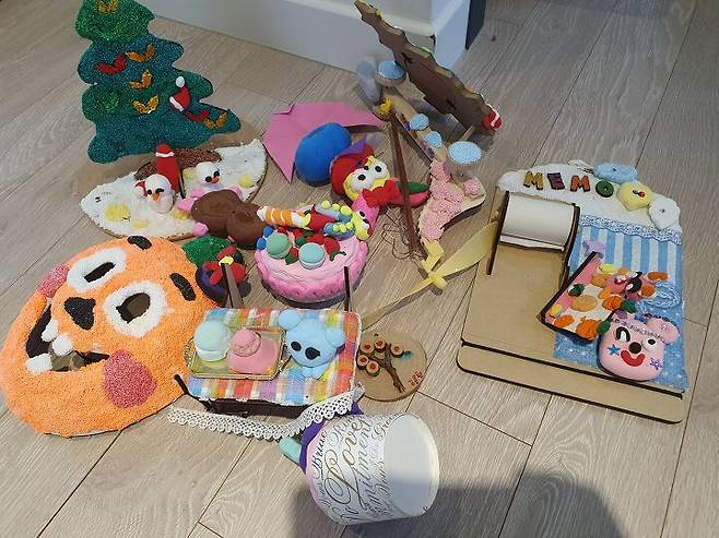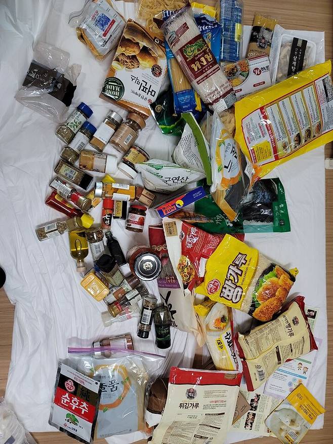 보자기, 꿀병, 잼병, 배달 온 플라스틱 용기, 나무젓가락, 설명서, 빵 끝, 배달 온 소스류, 폴더폰..................