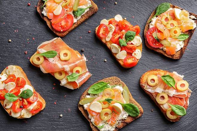 ‘브루스게타’는 메인 요리를 먹기 전에 간단하게 즐기는 애피타이저다. 납작하게 썰은 바게트 빵 위에 치즈, 과일, 채소 등 각종 재료를 얹어 먹는데 빵과 토핑의 조화가 멋스러우면서 맛도 훌륭하다. 간단하게 즐길 수 있는 술안주 또는 든든한 간식을 찾는다면 브루스케타를 추천한다.