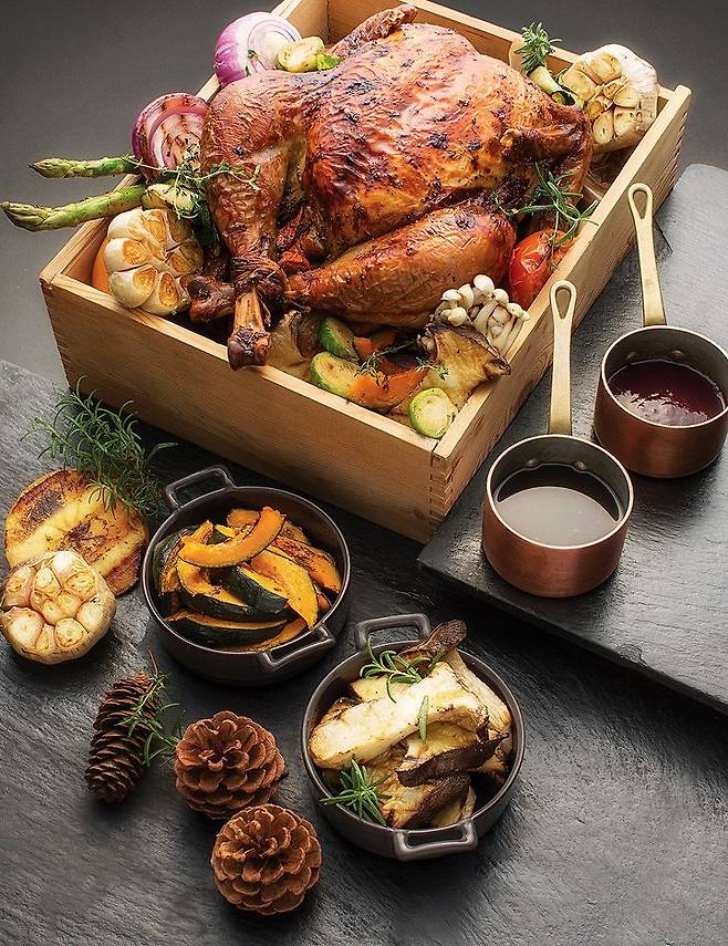 홈 파티를 계획 중인데, 좀 더 럭셔리하고 트렌디하게 준비하고 싶다고? 그렇다면 콘래드로 가보자. 콘래드 서울은 연말을 빛내 줄 다양한 미식 요리에 집중했는데, 첫 번째는 연말 홈 파티용 테이크 아웃 칠면조 구이 세트. 10인용의 통 칠면조 구이와 그레이비소스 및 크랜베리 콤포트가 포함된다고 하니 메인 디시로 손색이 없다. 심지어 배달도 가능! 연말 파티에서는 메인 디시 못지않게 디저트 역시 중요한데, 크리스마스 시즌 한정 케이크와 디저트도 준비했다. 패션 프루츠 맛의 초콜릿 크림을 가득 채운 ‘크리스마스 트리 케이크’부터 통나무 모양의 케이크로 부드러운 아몬드 초콜릿 가나슈에 로스티드 헤이즐넛을 더한 ‘리틀 포레스트 케이크’, 그밖에 ‘크리스마스 선물 케이크’와 ‘부쉬 드 노엘 케이크’까지. 무엇을 선택하든 연말 느낌 물씬 나는 화려한 비주얼 덕분에 더욱 더 풍성하고 완벽한 연말 파티가 될 듯.