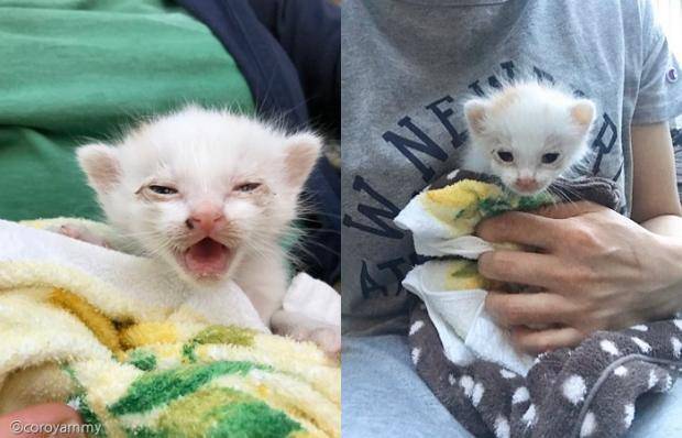 일본에 거주 중인 트위터 유저 'coroyammy'는 지난달 8일 반려견 '하치오'와 밤 산책을 나섰다가 아기 고양이를 발견했다.