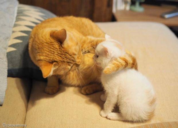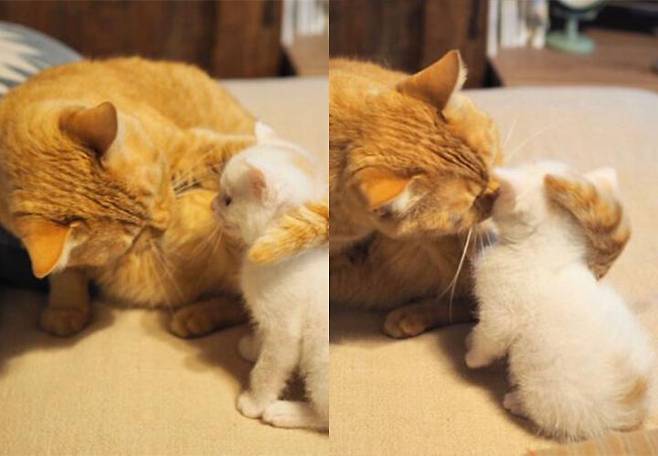 지난 24일(현지 시간) 홍콩 매체 hk01은 집사가 냥줍해 온 동생 냥이 '노비타'를 정성껏 돌봐주는 형 고양이 '사부'를 소개했다.
