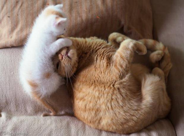 밥을 뺏어 먹어도 이해하고 놀아주거나 그루밍을 해주는 등의 일도 누가 시키지도 않았는데 도맡아서 했다.