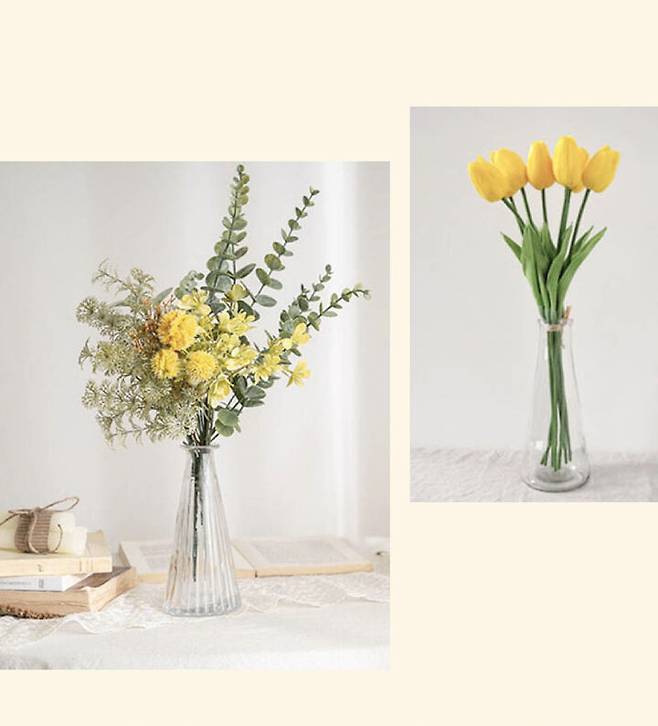 (우) 꽃향기가 날 것만 같은 노랑 튤립 조화, 1만원대