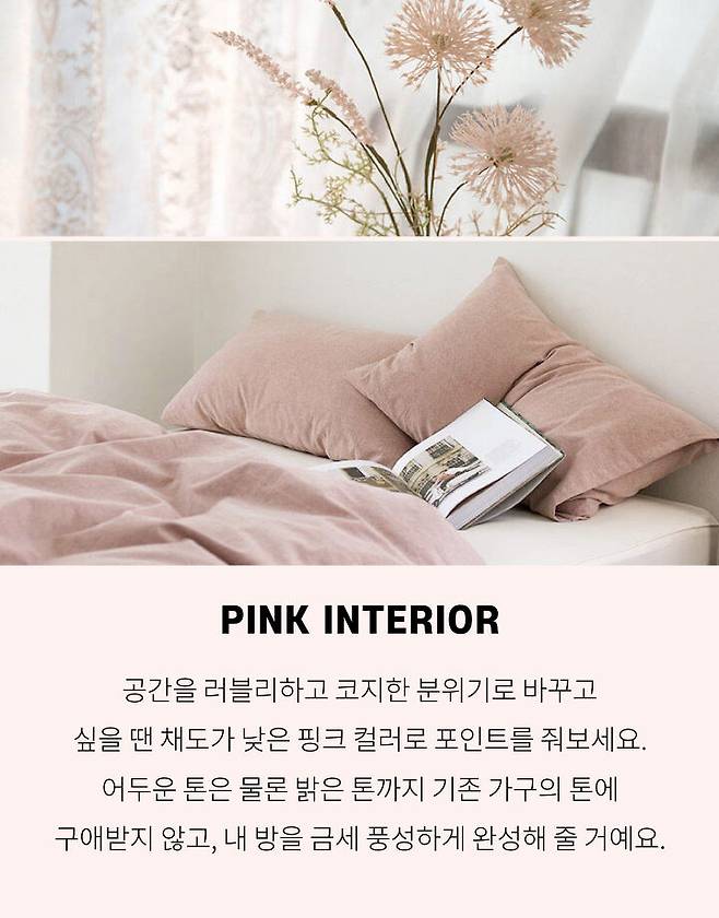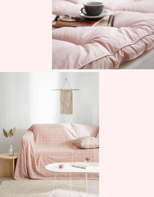 (아래) 핑크빛 거실을 완성하는 소파커버, 5만원대