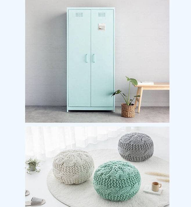 (아래) 상큼한 민트 컬러의 다용도 니트푸프, 2만원대