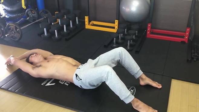 크런치는 허리가 바닥에 붙어있는 상태로 운동하고