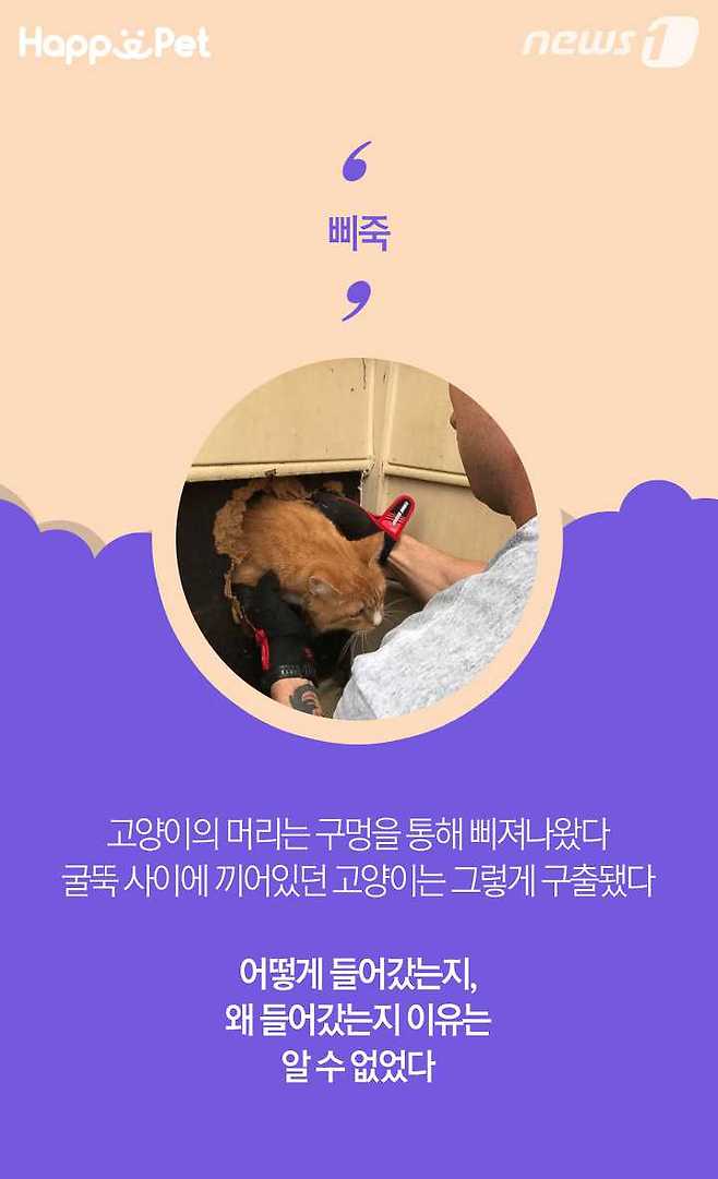 최근 미국에서 고양이들이 소방관들의 도움으로 목숨을 건진 일들이 벌어졌다. 한 고양이는 굴뚝에 갇혀 빠져나오지 못할 뻔 했지만 소방관의 도움으로 살아났고, 다른 한 고양이는 화재가 난 집에서 연기를 들이마셔 죽을 뻔했지만 심폐소생술(CPR)을 해 겨우 살아났다. 고양이의 생명은 9개라는 말이 괜히 나온 말은 아닌 듯하다.