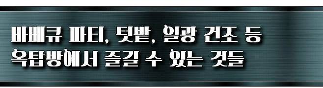 옥탑방은 가격대가 비슷한 반지하와 달리 많은 것을 누릴 수 있다. 특히 옥상에서 친구들과 함께하는 바비큐는 옥상을 선호하는 이들이 많이 기대하는 것 중 하나다. 작은 텃밭을 일궈 상추나 깻잎 정도는 쉽게 바로바로 먹을 수 있고, 햇빛이 쨍쨍한 날에는 옷이나 이불 등을 일광건조할 수도 있다.