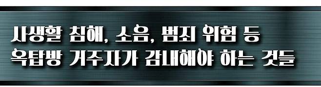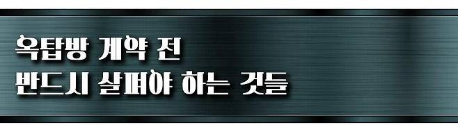 그럼에도 옥탑방에서 한 번 살아보고자 하는 이가 있을 것이다. 또한 부득이하게 옥탑방을 선택해야 하는 이들도 있다. 젊어서 고생을 사서 한다고 옥탑방에서 거주하겠다면, 최소한 실거주자들이 말하는 ‘옥탑방을 계약하기 전 반드시 살펴야 하는 것’들은 무엇인지 알아보자.