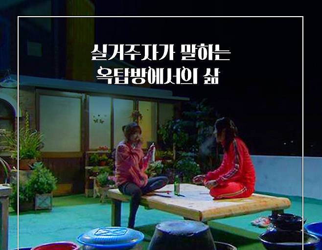 옥탑방은 가격대가 비슷한 반지하와 달리 많은 것을 누릴 수 있다. 특히 옥상에서 친구들과 함께하는 바비큐는 옥상을 선호하는 이들이 많이 기대하는 것 중 하나다. 작은 텃밭을 일궈 상추나 깻잎 정도는 쉽게 바로바로 먹을 수 있고, 햇빛이 쨍쨍한 날에는 옷이나 이불 등을 일광건조할 수도 있다.