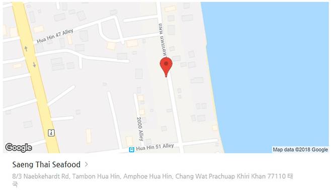 후아힌 해변의 모래사장에 인접해 환상적인 조망을 자랑하는 곳이에요. 가격은 일대 해산물 식당에 비해 비싼 편이지만… 그럼에도 현지인들의 발길이 끊이지 않아요.
