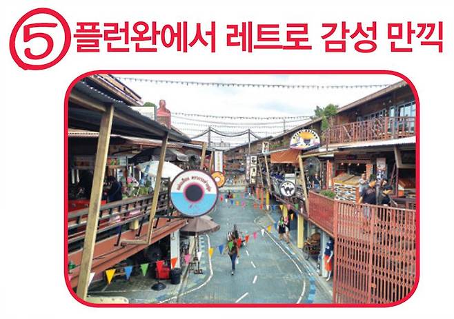 과거에서 놀며 과거를 배우는 장소, 플런완! 먹거리 노점과 레스토랑, 잡화, 의류 매장 등이 자리한 야외 공간이지만 그냥 쇼핑센터는 NO, NO!