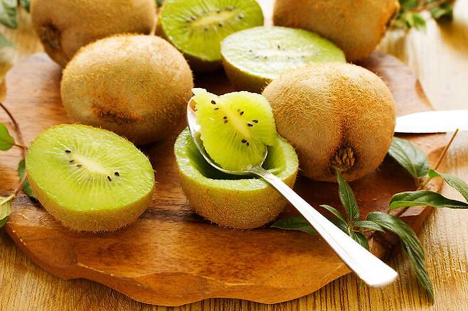 키위에는 비타민C가 풍부하고, 임신한 강아지에게 좋은 엽산도 다량 함유되어 있어요.