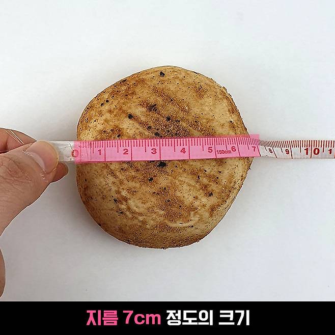 지름은 7cm 정도 크기였어요. 빵이라 생각하면 작지만 감자라고 생각하면 보통인 크기..?ㅋㅋ