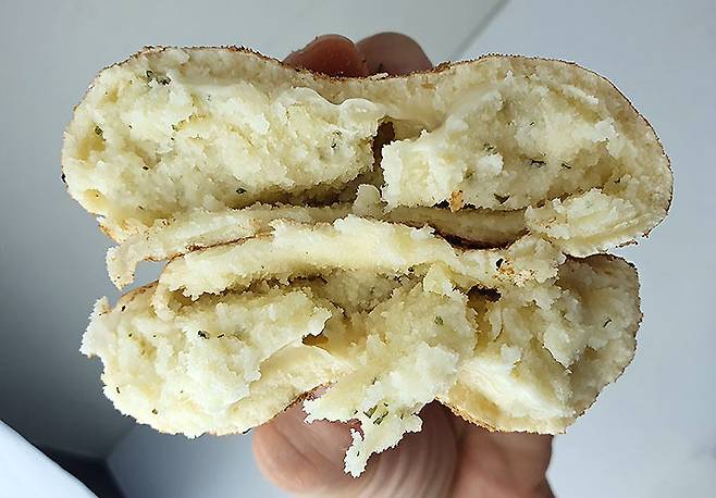 으깬 감자가 조금 들어있고 반죽이 두꺼울 줄 알았는데 오히려 그 반대였어요.