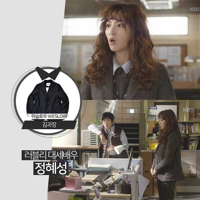 짙은 브라운 톤의 헤링본 재킷으로 단정하고 매니시한 느낌을 강조한 룩을 연출한 정혜성. 여기에 뽀글거리고 부스스한 헤어가 더해져 털털하지만 귀여운 느낌의 오피스룩을 연출해 주었어요! 편안함을 추구하는 분이라면 정혜성의 놈코어 룩처럼 헤링본 재킷과 슬랙스팬츠로 연출해보세요. 귀여우면서 스타일 챙기는 가성비 끝판왕 코디가 될 거에요!