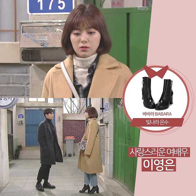 베이지색 오버핏 코트+ 일자 커팅 청바지 + 블랙 앵클부츠로 코디를 마무리한 <빛나라 은수>의 이영은! 이영은이 신은 앵클부츠는 가을, 겨울철 오피스룩과 무난하게 매칭 가능한 아이템으로 작년 겨울부터 지금까지 사랑 받는 아이템이죠! 커팅 진에 매치하면 꾸민 듯 안 꾸민 듯 시크함을 보여줄 수 있어요. 이너에 니트나 편안한 브이넥을 입으면 멋진 코디가 된답니다!