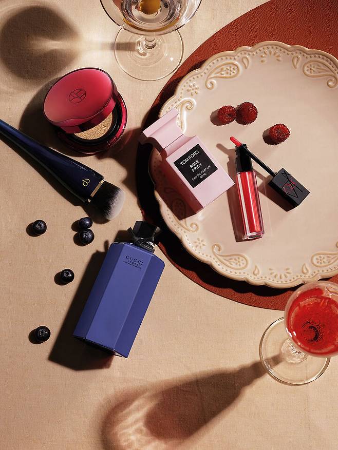 홈 바캉스의 하이라이트는 역시 소중한 사람과 함께 즐기는 저녁 만찬. 피부는 쿠션으로 가볍게 정돈하고 눈가는 해 질 녘 여름날의 몽환적 감성을 담아 깊이 있게 표현한 뒤 와인을 마셔도 쉽게 지워지지 않는 립 틴트로 마무리한다. 여름밤에 어울리는 은은한 향수는 필수. 묵직하기보다는 달콤하고 가벼운 향을 선택하고, 저녁 바람에 흔들리는 머릿결에서 향기가 퍼지도록 헤어 퍼퓸을 사용하는 것도 좋다.