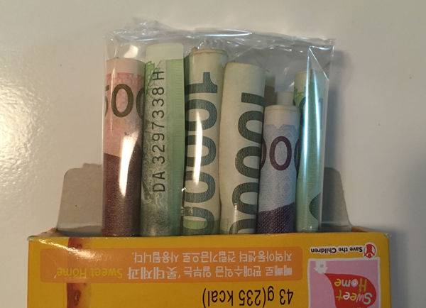 진짜 빼빼로를 빼고 봉지 안에 현금 빼빼로를 넣습니다.