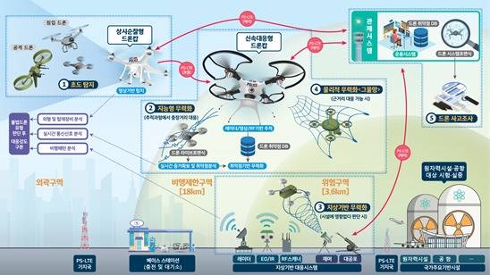 이를 위해 과기정통부는 불법 드론의 취약점을 분석해 실시간 무력화하는 기술과 레이더EO/IR(전기광학적외선 장비) 등을 이용한 지상 기반 대응 시스템 등을 개발하고 전체 시스템을 통합실증한다.