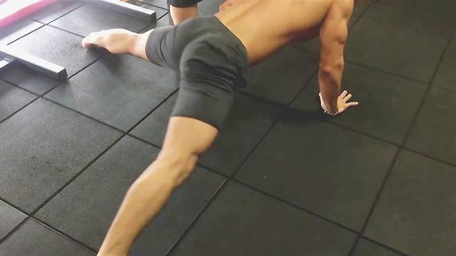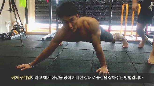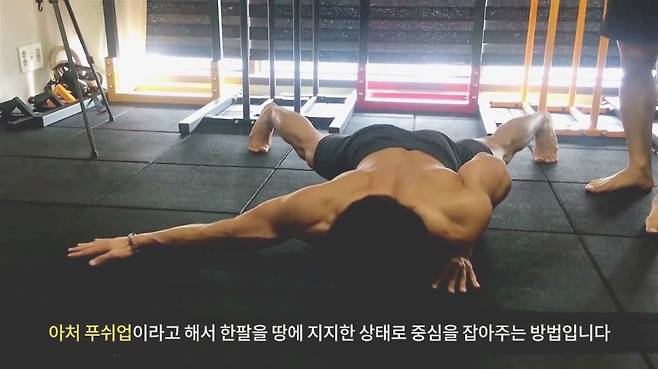한쪽 팔을 바닥에 지지한채 하는 푸쉬업이죠.
