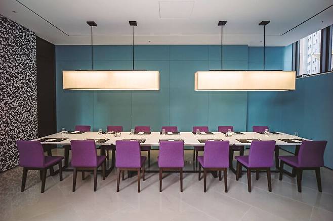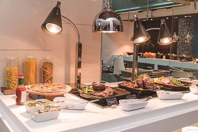 조식을 먹을 수 있는 2층의 수원 키친은 매일 다양한 현지 요리와 인터내셔널 요리를 함께 만날 수 있는 올어라운드 다이닝이다. 3월 말까지 진행 중인 딸기 프리미엄 패키지를 즐기기 위해 많은 사람이 이곳을 찾고 있었다. 128석이 마련된 수원 키친은 오픈 키친 형식으로, 한쪽의 라이브 에그 스테이션을 통해 음식이 제조되는 모습을 볼 수 있다. 이곳은 특히 소규모 다이닝 룸인 PDR(Private Dinning Room)가 다양한 옵션으로 고객의 선택지를 넓힌다. 예를 들어 최대 42명이 들어가는 음향 시스템까지 갖춘 PDR는 인근 기업의 연회장으로 이용될 예정이다. 또 최대 15명이 들어갈 수 있는 PDR는 창 가에 너른 소파 공간을 갖춰 소규모 돌잔치 장소로 벌써부터 예약이 차고 있다. 이를 포함해 수원 키친은 총 4개의 PDR를 보유하고 있다.