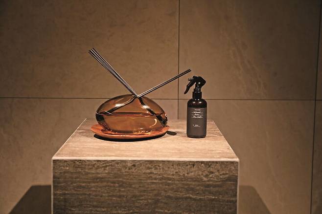 자유로운 분위기 덕분에 호텔에 들어서면 으레 느끼던 작은 긴장감마저 풀어졌다. 체크인을 하는 중에 궁금증이 생겼다. 내부에서 느껴지는 향의 정체다. 직원에게 슬쩍 물으니, 코즈메틱 브랜드 탬버린즈와 협업해 만든 시그니처 향이라고 한다. 이름은 ‘854’로, 호텔의 번지수에서 따온 것이다. 개똥쑥과 앰버, 솔잎을 원료로 했단다. 묘하게 친근한데 낯설고, 포근한데 머리가 맑아지는 향이다. 이곳에서의 첫 로컬 경험은 향으로 시작됐다.