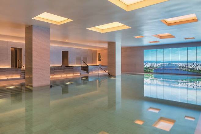 밥을 먹고 나니 소셜 미디어에서 자주 봤던 수영장이 떠올랐다. 지하에 위치해서 뷰를 기대할 순 없지만, 한강을 담은 영상이 수영장의 한쪽 벽면을 가득 채우고 있었다. 한 폭의 미디어아트 작품 같다. 수영장으로 향하는 길에도 국내 작가들의 도자기나 전통 매듭 작품들이 전시돼 있었다. 투숙객을 위한 ‘로컬 경험’ 콘텐츠로 호호당과 함께하는 보자기 클래스, 설화수 뷰티 & 라이프스타일 클래스를 비롯한 다양한 즐길 거리도 마련해두었다. 총평하자면, 그간의 갈증이 사라지는 기분이었다. 외국인 관광객이 엄청나게 늘어나고 있음에도 한국의 색깔을 담은 호텔이 없는 것이 늘 아쉬웠기 때문이다. 지금 가장 트렌디한 한국의 문화와 우리에게도 새로운 전통의 문화. 럭셔리와 허례허식 없는 담백함. 그 미묘한 경계에 서서 보낸 만족스러운 하루였다.