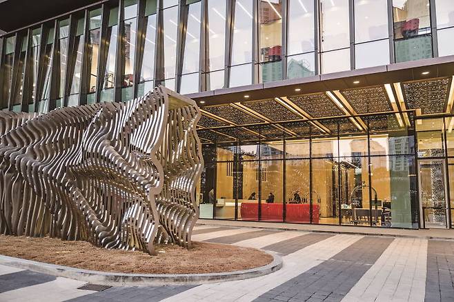 지난 1월 1일, 2020년의 시작과 함께 코트야드 바이 메리어트 수원Courtyard by Marriott Suwon이 문을 열었다. 국내 다섯 번째 메리어트 인터내셔널 브랜드 호텔 이자 수원에서는 첫 번째 코트야드 바이 메리어트의 오픈이다. 문을 연지 일주일 남 짓, 궁금한 마음을 참지 못하고 서둘러 찾아 나섰다. 도착 직후 이곳의 지리적 조건에 먼저 놀랐다. 2월 초 오픈 예정인 갤러리아 백화점과 맞닿고 수원컨벤션센터와 연결되는 코트야드 바이 메리어트 수원은 휴식과 비즈니스, 쇼핑을 한 번에 할 수 있는 최적의 위치 조건을 갖췄다. 맞은편에는 롯데아울렛이 있고 뒤쪽으로는 경기도 최대 인공호수로 손꼽히는 광교호수공원을 도보로 갈 수 있다. 신분당선 광교중앙역에서 도보로 6분 남짓한 거리에다가 광교 최고의 힙플레이스로 손꼽히는 엘리웨이와도 1킬로미터 정도로 매우 가깝다.