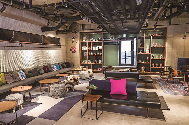 이 호텔을 가장 잘 즐기는 방법은 밀레니얼처럼 노는 것이다. 익선동이나 인사동에서 요즈음 유행하는 뉴트로한 스폿들을 돌아보면서 스마트폰으로 체크인한다. 목시 서울은 모바일 체크인, 체크아웃 서비스와 스마트폰으로 객실을 열고 닫을 수 있는 키 리스Key less 시스템을 전 객실에 도입했다. 메리어트 본보이 회원이라면 앱을 통해 이용이 가능하다. 체크인을 하면 객실에서만 있지 말고 공용 공간을 즐겨야 한다. 1층과 2층에 마련된 컬러풀하고 아늑한 분위기의 라운지는 생산적인 소통을 위한 완벽한 장소다. 에스프레소 머신에서 언제든 커피를 마실 수 있고, 스낵과 떡볶이 등을 파는 밴딩머신도 구비되어 있다. “투숙객이 함께 보드게임을 즐기고 인사동이나 삼청동 등 주변 박물관 투어를 하는 등 매주 고객들이 참여할 수 있는 이벤트를 계획하고 있어요. 곧 플레이스테이션 게임기와 농구대도 설치할 예정입니다.” 목시의 DNA를 담은 프로그램이 앞으로도 계속 생겨날 예정이라고 한다.