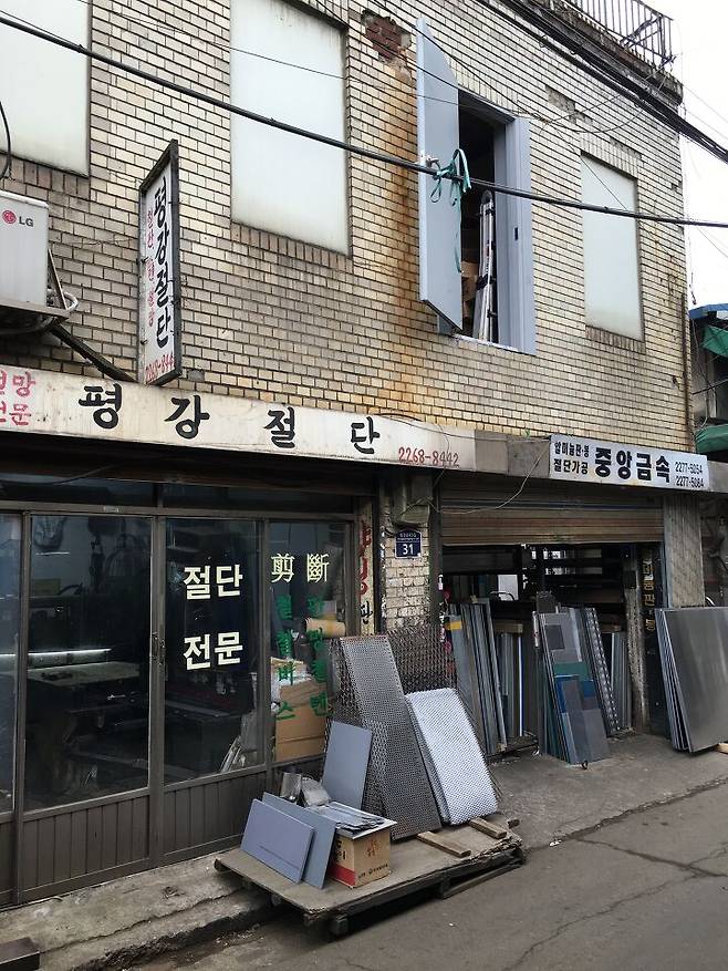 경의선 숲길 공원은 주변 건물과 공원의 폭이 달라지면서 구간마다 다른 분위기를 풍긴다. 공원 주변 대부분이 이미 고층 건물이 들어선 지역으로 개발되어 철길의 흔적을 찾기는 어렵지만, 밀도 높은 도심의 공원 역할을 훌륭하게 소화하고 있다. 고층 건물이 둘러싼 다른 구간과는 달리 경의선 숲길 공원의 남쪽 끝 원효로2가에는 공원을 따라 오래된 건물들이 길게 늘어서 있다. 1~2층짜리 열한 동의 건물 중 여덟 동이 1950년대에 지어져 경의선과 오랫동안 운명을 함께한 건물들이다. 위태로워 보일 정도로 낡았지만 경의선 철길이 숲길 공원이 되기 전, 길 위로 기차가 다니던 시절을 쉽게 떠올릴 수 있도록 돕는다.