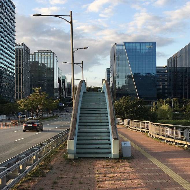 작가 장류진의 단편소설 '일의 기쁨과 슬픔'은 판교테크노밸리에서 일하는 직장인의 애환을 담은 이야기다. 창작과비평 홈페이지에 소설이 공개됐을 때 조회 수 400만 뷰를 기록하며 많은 청년들의 공감을 샀다. 소설의 인기와 별개로 SNS에서 소설에 나오는 판교의 육교(나중에 전망대로 밝혀졌다)가 화제가 되었는데, 그냥 올라갔다가 내려오는 게 전부인 구조물의 무용함 때문이었다.