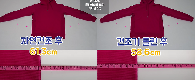 그런데 건조기가 편리하긴 하지만 옷감 수축에 대한 걱정이 들곤 합니다. 건조기를 사용했을 때 옷이 얼마나 줄어드는 걸까요? 직접 테스트 해봤습니다.