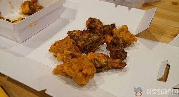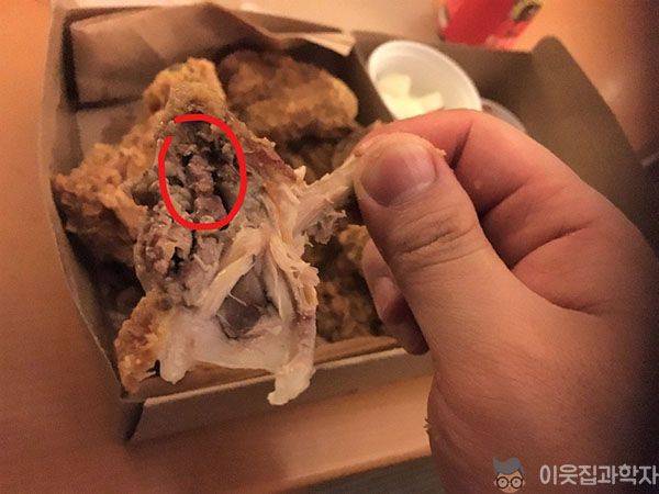 바로 이때 미처 떨어지지 못한 폐가 닭 갈비 부위에 남습니다. 우리가 치킨을 뜯다가 발견하는 바로 그 부위입니다.