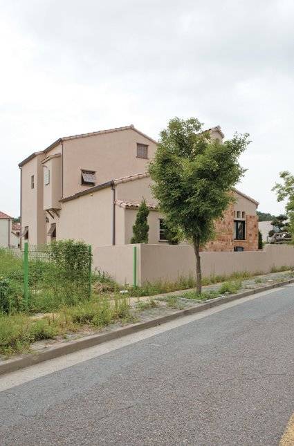 이러한 이점 덕분에 동탄 신도시엔 각양각색의 단독주택이 들어서 있다. 철근콘크리트, 목조주택, 스틸하우스 등 각기 다른 구조와 평형대에 다양하게 마감한 여러 주택을 구경할 수 있는데, 그 중 따스함이 느껴지는 '생폴 드 방스'풍 주택 하나가 발길을 멈추게 한다.